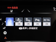 安全装備であるブラインドスポットモニター[BSM]、リヤクロストラフィックオートブレーキ[パーキングサポートブレーキ(後方接近車両)]が装着されています。