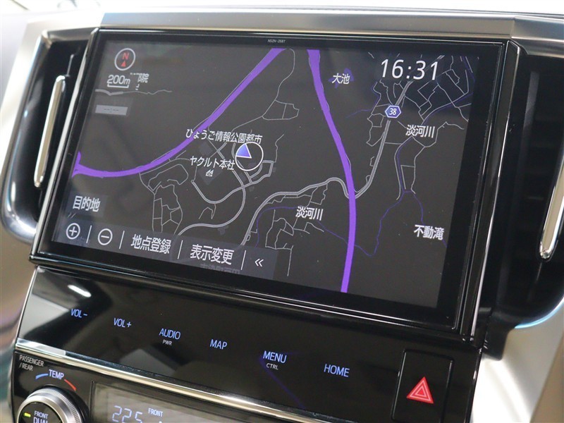 安全性を考慮し、視線移動の少ない位置にセットされた純正SDナビ!CD、DVDビデオ、フルセグTVに対応しています。