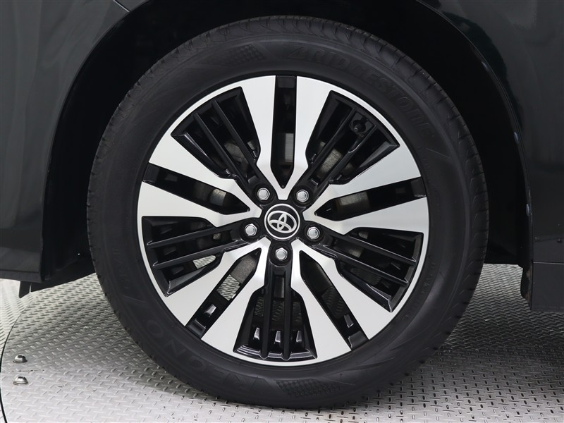 専用18インチアルミホイール(切削光輝+ブラック塗装)が装着されています。タイヤサイズ235/50R18