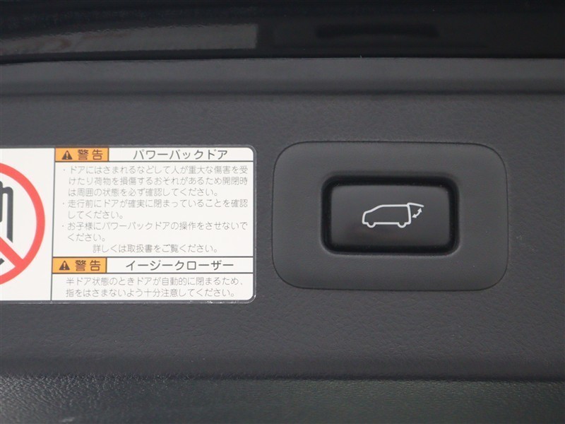 パワーバックドア(挟み込み防止機能付)を装備しています。操作はスマートキー、オーバーヘッドコンソール部、バックドア内側下部の各スイッチで行えます。