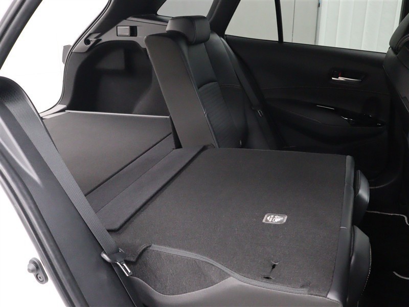 ラゲージ側面のレバーを引くだけでシートバックが前へ倒れ、さらにワイドなスペースが出現します。