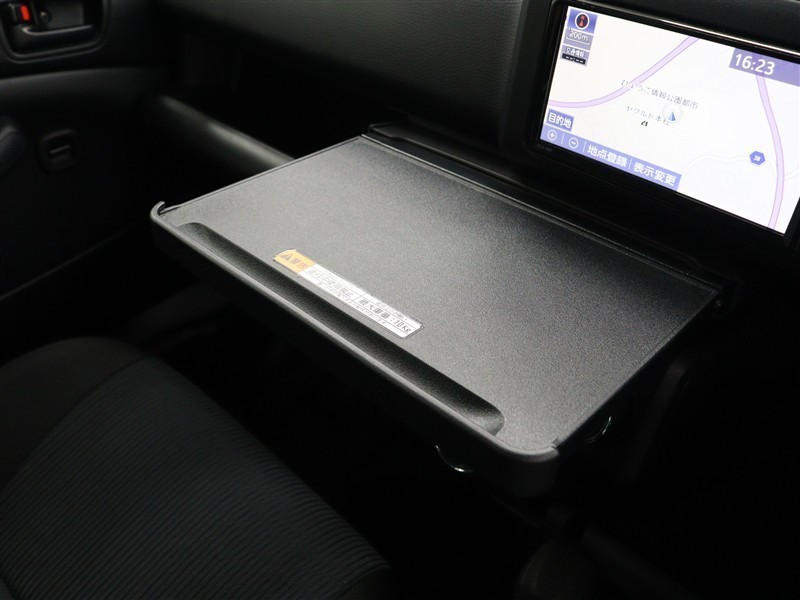 ビジネスシーンをサポートする、A4サイズのノートパソコンや弁当も置ける大型のインパネテーブルが設置されています。