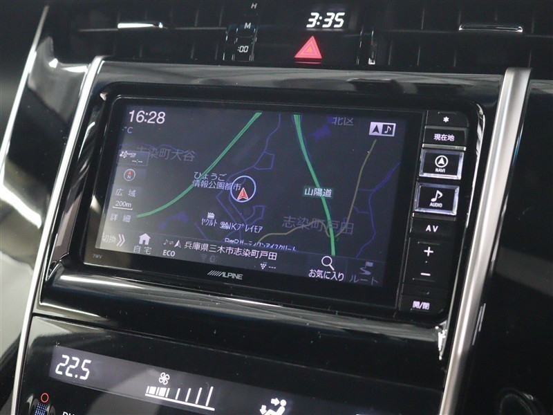 安全を考慮し、視線移動の少ない位置にセットされたアルパインのメモリーナビ!CD、DVDビデオ、フルセグTVに対応しています。