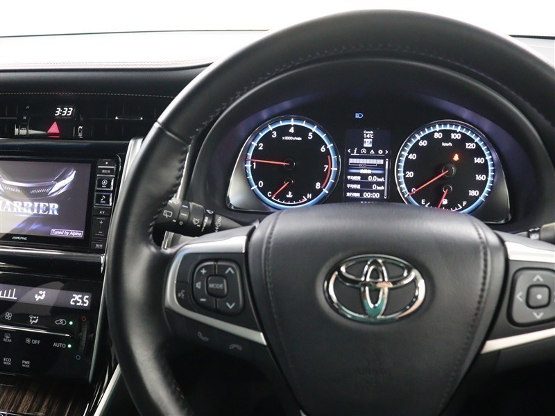 マルチインフォメーションディスプレイ内の表示切替やオーディオなどの操作を、ステアリングから手を離さずに行うことができるステアリングスイッチ装備です。