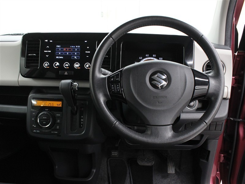 ステアリングホイールから手を離すことなくオーディオ操作が行えるステアリングスイッチを採用しています。