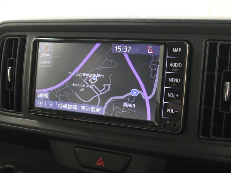 安全を考慮し、視線移動の少ない位置にセットされた純正SDナビ!AM/FMラジオ、Bluetoothに対応しています。