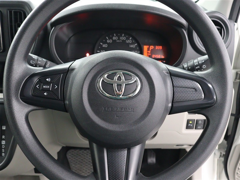 ステアリングホイールから手を離すことなくオーディオ操作が行えるステアリングスイッチを採用しています。