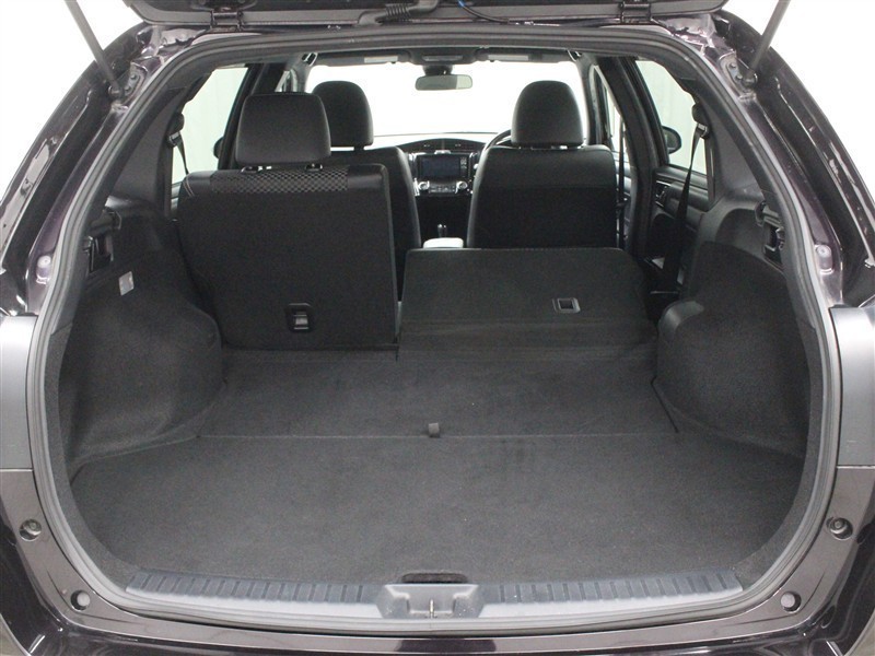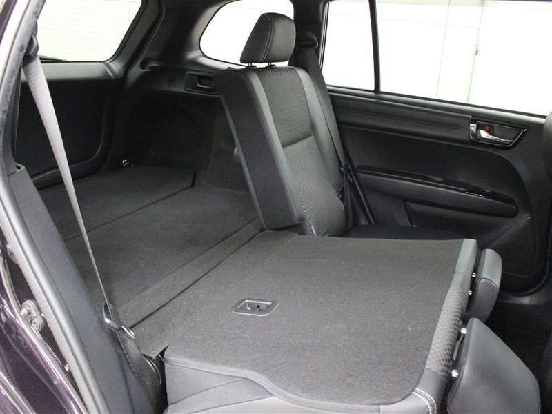 ラゲージ側面のレバーを引くだけでシートバックが前へ倒れ、さらにワイドなスペースが出現します。