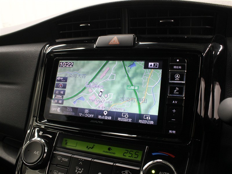 安全性を考慮し、視線移動の少ない位置にセットされたアルパインのメモリーナビ!CD、DVDビデオ、フルセグTVに対応でUSB/HDMI端子も備えられています。