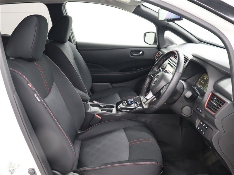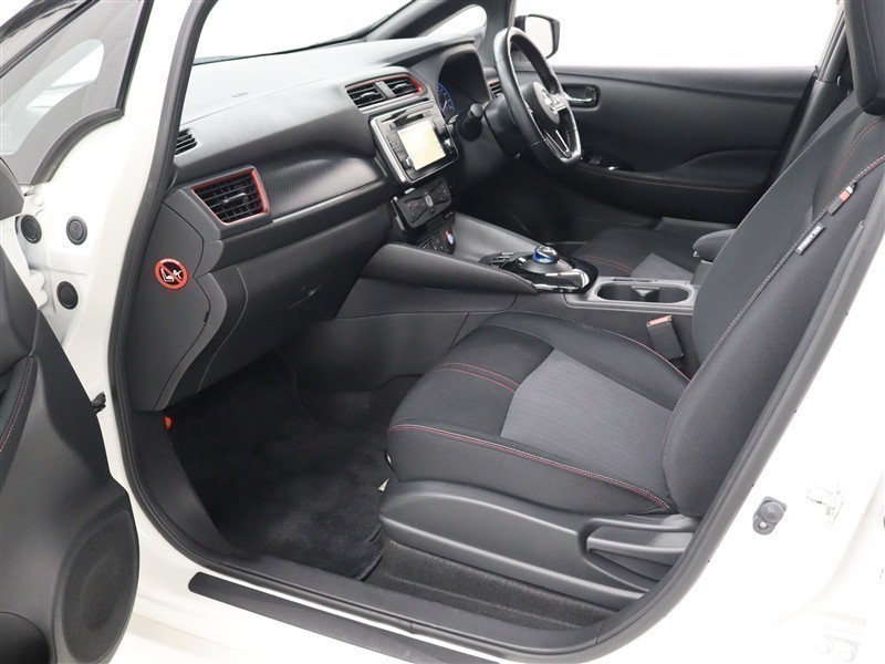 NISMO専用の3本スポークステアリングのレッドセンターマークなど、NISMOのアイコニックカラーであるレッドアクセントを随所にあしらっています。