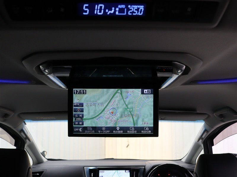 広い空間でも見やすい、天井取り付けタイプ迫力の大画面後席ディスプレイを装備しています。