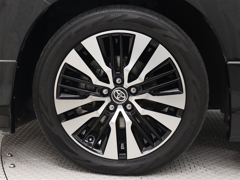 専用18インチアルミホイール(切削光輝+ブラック塗装)が装着されています。タイヤサイズ235/50R18