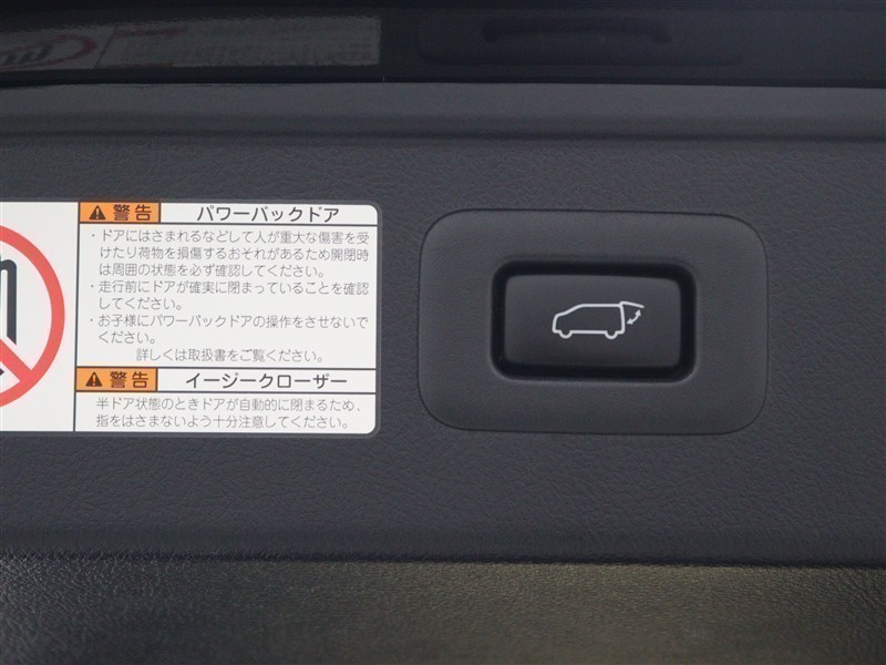 パワーバックドア(挟み込み防止機能付)を装備しています。操作はスマートキー、オーバーヘッドコンソール部、バックドア内側下部の各スイッチで行えます。