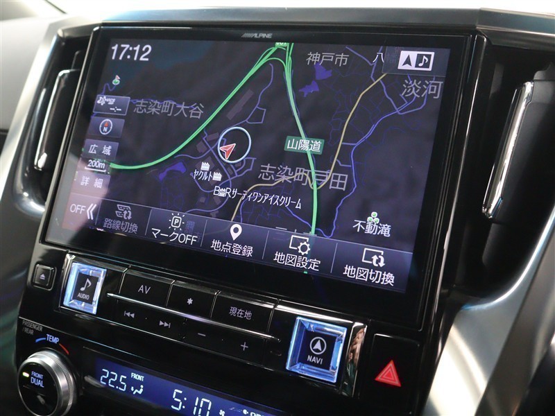安全性を考慮し、視線移動の少ない位置にセットされたアルパインの11インチメモリーナビ!CD、DVDビデオ、フルセグTVに対応でUSB/HDMI端子も備えられています。