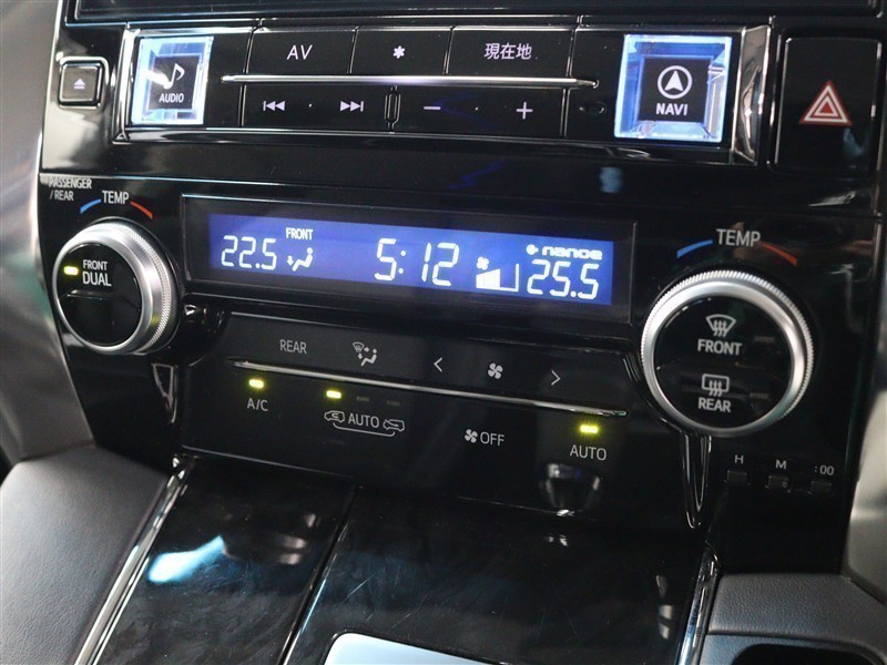 左右独立温度コントロールフルオートエアコン!運転席、助手席それぞれ独立して温度設定が可能です。ナノイーも搭載され、室内空間は快適です。