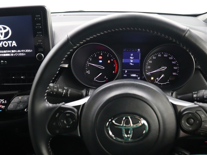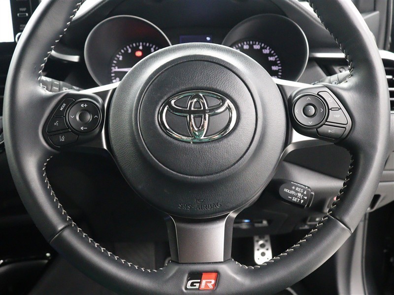 シルバーステッチとGRエンブレムを施し、スポーク部をダークメタリック塗装とした専用本革巻き小径3本スポークステアリングホイールや、アルミペダルなどが採用されたスポーティなインテリアです。