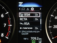 車線変更時などに、ドアミラーでは確認しにくい後側方エリア(ブラインドスポット)に存在する車両をレーダーで検知。警告サインをドアミラー等に表示することで、運転者に注意喚起する機能。
