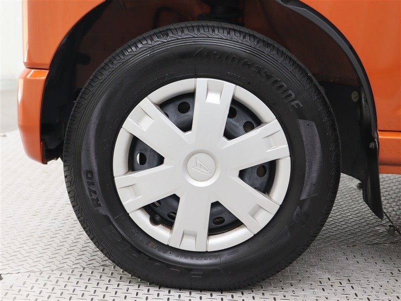 足元を汚れから守りスムーズな空気の流れに貢献するフルホイールキャップを装着しています。タイヤサイズ145/80R12