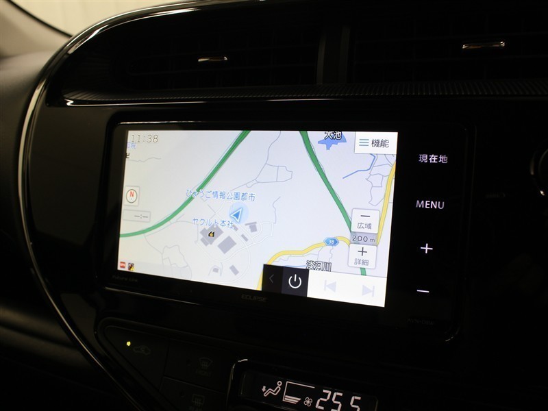 安全性を考慮し、視線移動の少ない位置にセットされたイクリプスのメモリーナビ!CD、DVDビデオ、フルセグTVに対応でUSB端子も備えられています。