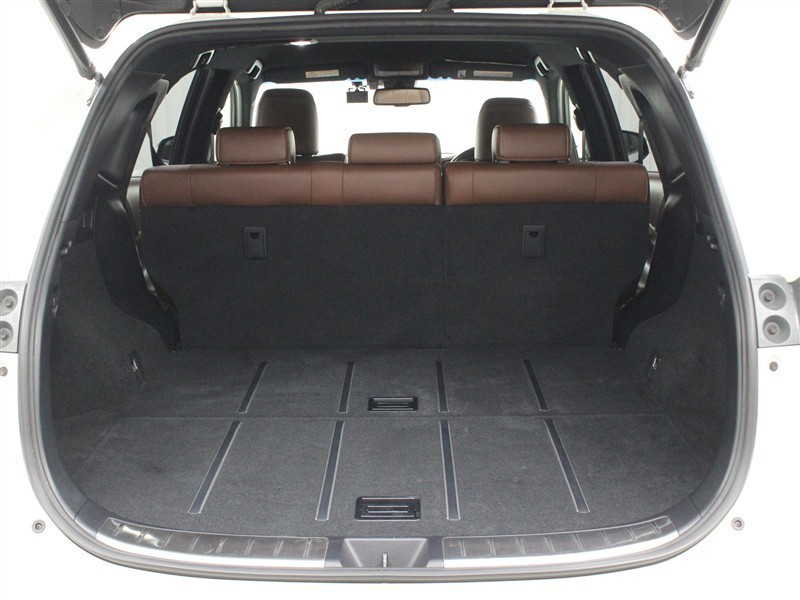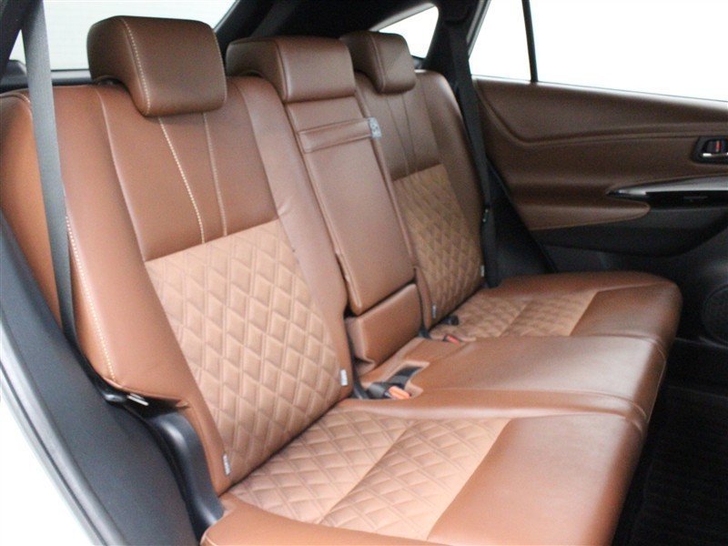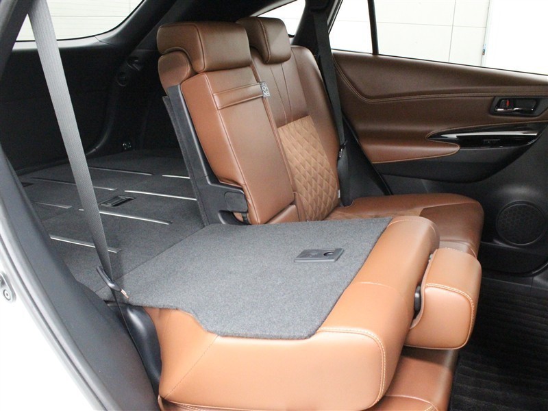 ファブリック+合成皮革(ダークサドルタン)のシートが採用されています。前後席間の間隔延長と前席シートバック形状の工夫で、ゆったりとくつろげる後席空間を確保しています。