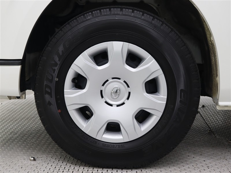 足元を汚れから守りスムーズな空気の流れに貢献するフルホイールキャップを装着しています。タイヤサイズ195/80R15