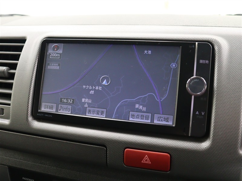 安全性を考慮し、視線移動の少ない位置にセットされた純正SDナビ!CD、DVDビデオ、フルセグTVに対応しています。