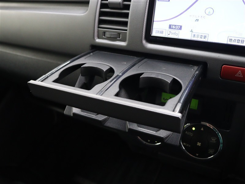 手に取りやすい位置に収納式カップホルダーを装備しています。