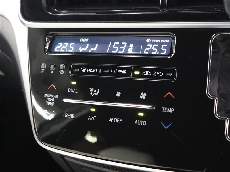 左右独立温度コントロールフルオートエアコン!運転席、助手席それぞれ独立して温度設定が可能です。ナノイーも搭載され、室内空間は快適です。