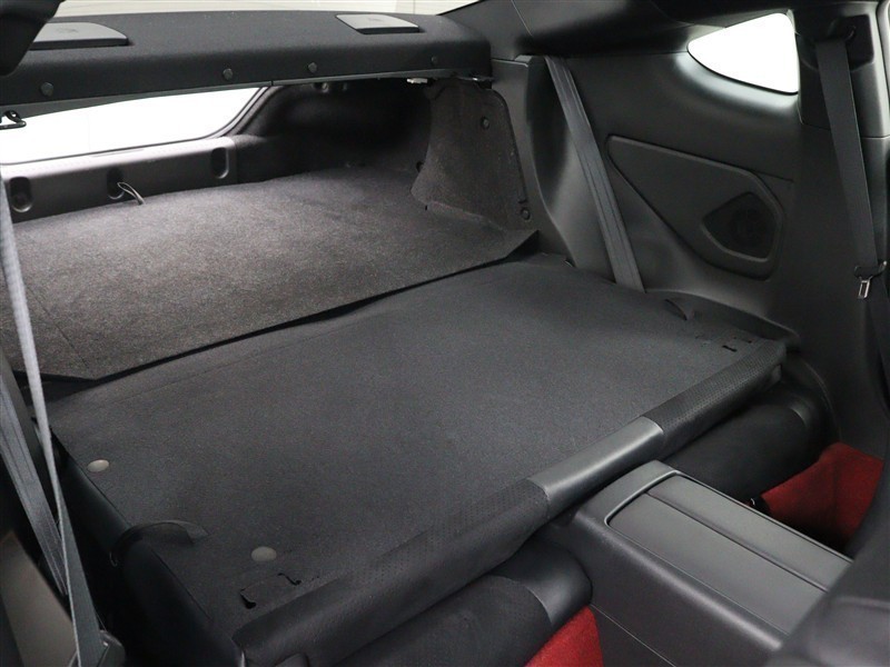 シートバックを前倒しにすると、トランクスルーに。生み出されたフラットで広いトランクスペースは、サーキットに移動してスポーツ走行を楽しむ方の利便性に配慮し、タイヤ4本と工具類の収納が可能です。