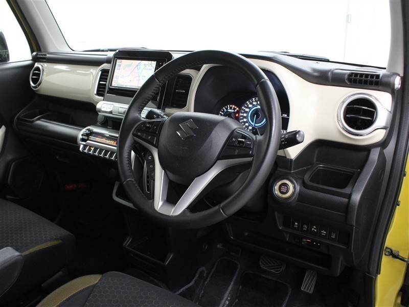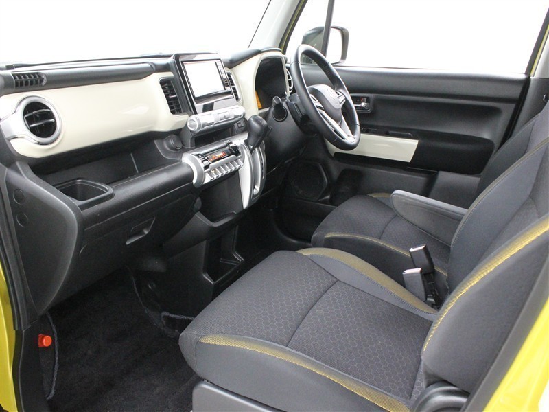 ステアリングやシフトノブが本革巻に、ドアハンドル類がメッキ、シートは黒のシート表皮にイエローのシートパイピングとカラーアクセントが採用されています。