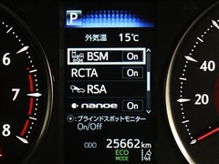 車線変更時などに、ドアミラーでは確認しにくい後側方エリア(ブラインドスポット)に存在する車両をレーダーで検知。警告サインをドアミラー等に表示することで、運転者に注意喚起する機能。