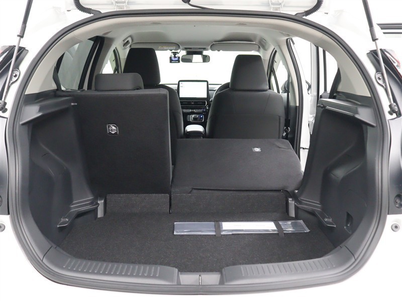 リヤシートを倒してスペースを広げた状態です。