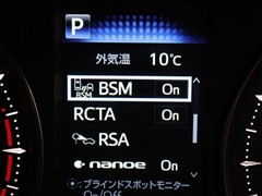 車線変更時などに、ドアミラーでは確認しにくい後側方エリア(ブラインドスポット)に存在する車両をレーダーで検知。警告サインをドアミラー等に表示することで、運転者に注意喚起する機能。