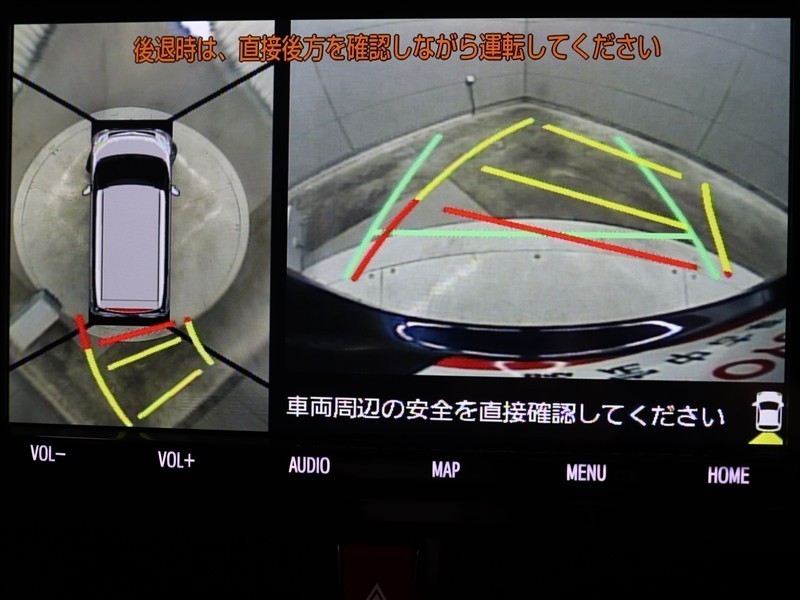 車両を上から見た様に表示するパノラミックビューモニターを装備しています。