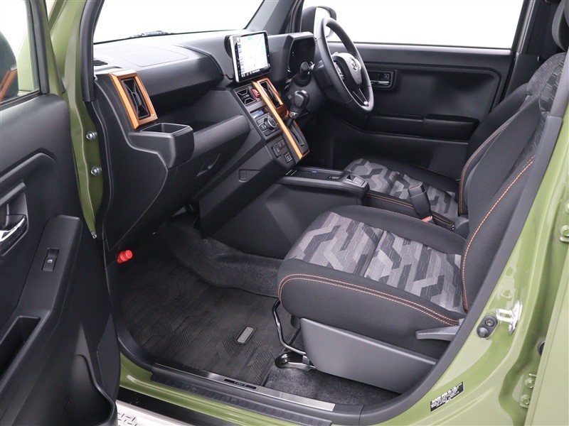 長時間のドライブでも疲れにくく、オレンジの差し色とカモフラージュ柄で個性も表現されたシートが採用されています。