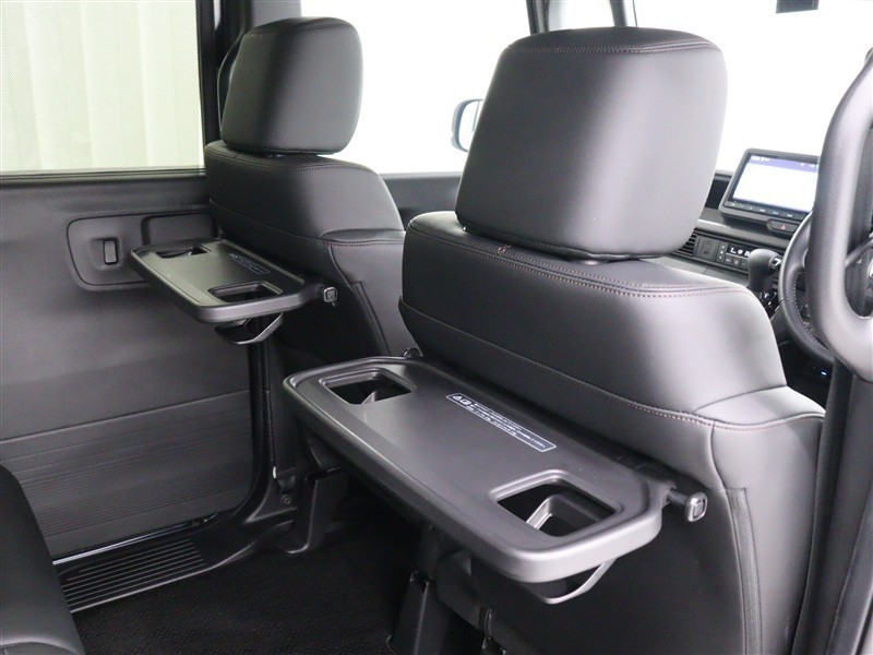 休憩時のちょっとした小物置きに使える、前席背面の格納式テーブルが装着。便利なコンビニフック付となっています。