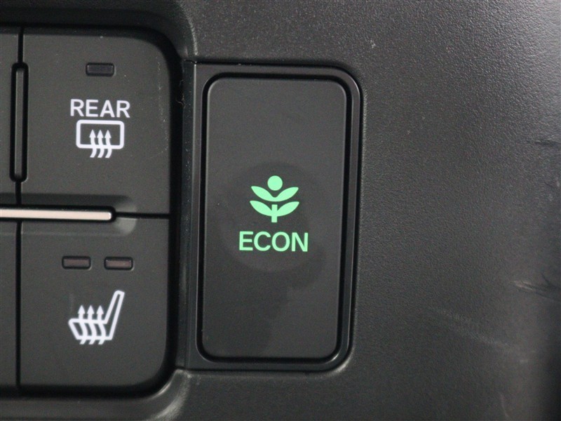 アクセルペダルの動きに対するエンジンの反応とエアコンの制御を切り換えることで、エネルギー消費を抑えて燃費を向上ささせる「ECONモード」スイッチです。