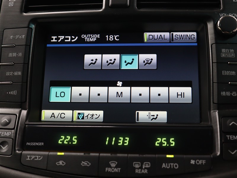 左右独立温度コントロールフルオートエアコン(花粉除去モード付)!運転席、助手席それぞれ独立して温度設定が可能です。プラズマクラスターも搭載され、室内空間は快適です。