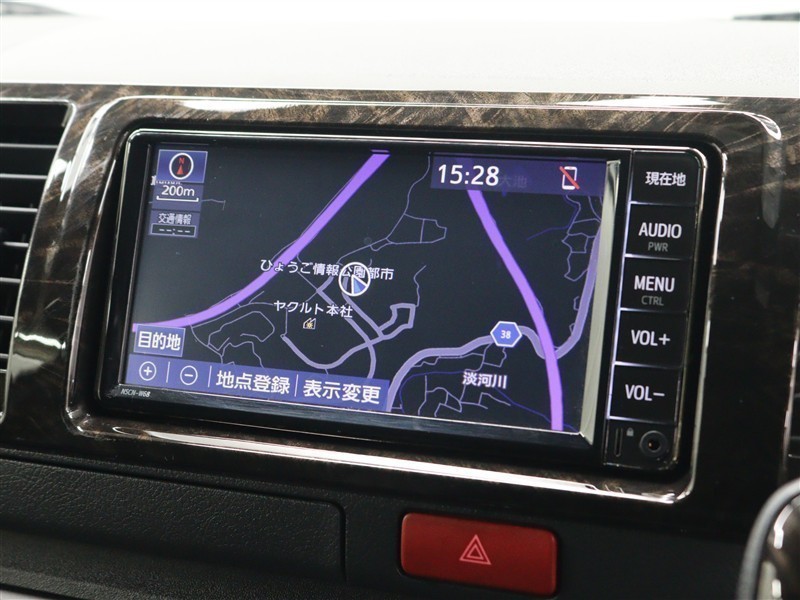 安全を考慮し、視線移動の少ない位置にセットされた純正SDナビ!ワンセグTV、AUX/Bluetoothに対応しています。
