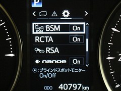 車線変更時などに、ドアミラーでは確認しにくい後側方エリア(ブラインドスポット)に存在する車両をレーダーで検知。警告サインをドアミラー等に表示することで、運転者に注意喚起する機能。