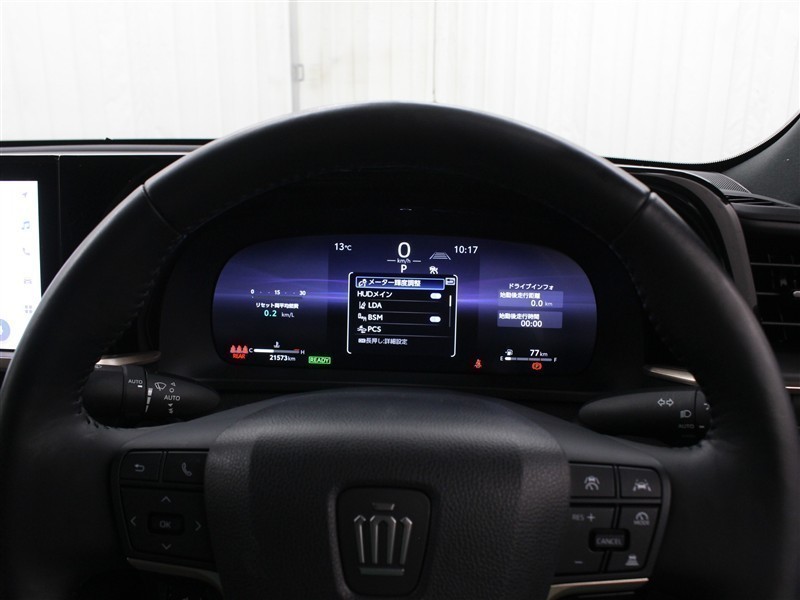 マルチインフォメーションディスプレイ内の表示切替やオーディオなどの操作を、ステアリングから手を離さずに行うことができるステアリングスイッチ装備です。