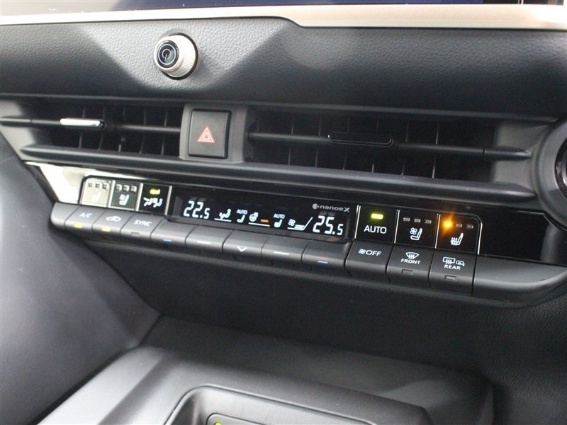 左右独立温度コントロールフルオートエアコン!運転席、助手席それぞれ独立して温度設定が可能です。ナノイーXも搭載され、室内空間は快適です。