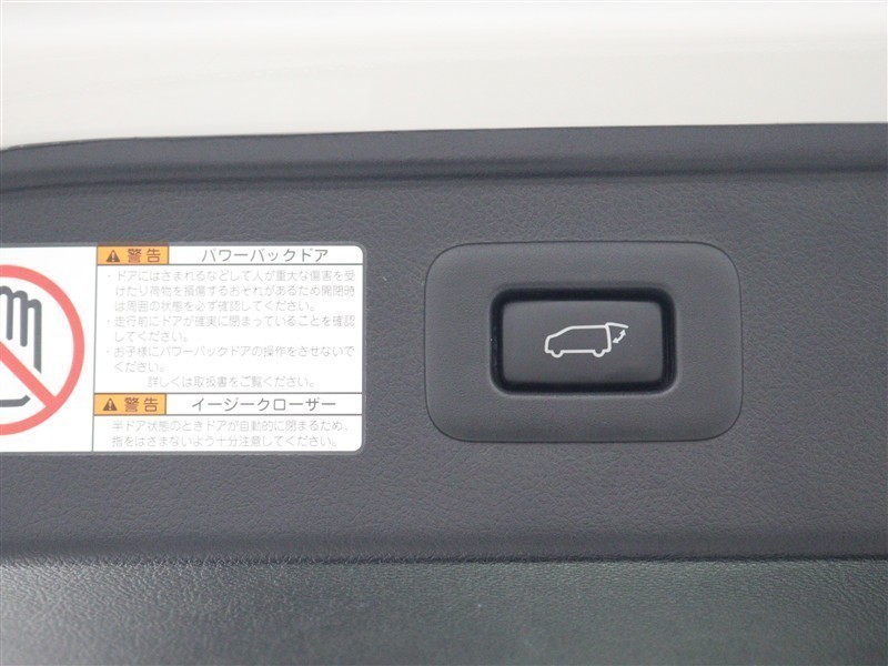 パワーバックドア(挟み込み防止機能付)を装備しています。操作はスマートキー、オーバーヘッドコンソール部、バックドア内側下部の各スイッチで行えます。