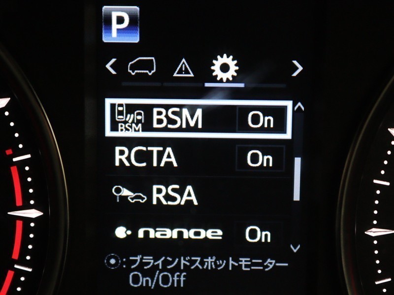 車線変更時などに、ドアミラーでは確認しにくい後側方エリア(ブラインドスポット)に存在する車両をレーダーで検知。警告サインをドアミラー等に表示することで、運転者に注意喚起する機能。