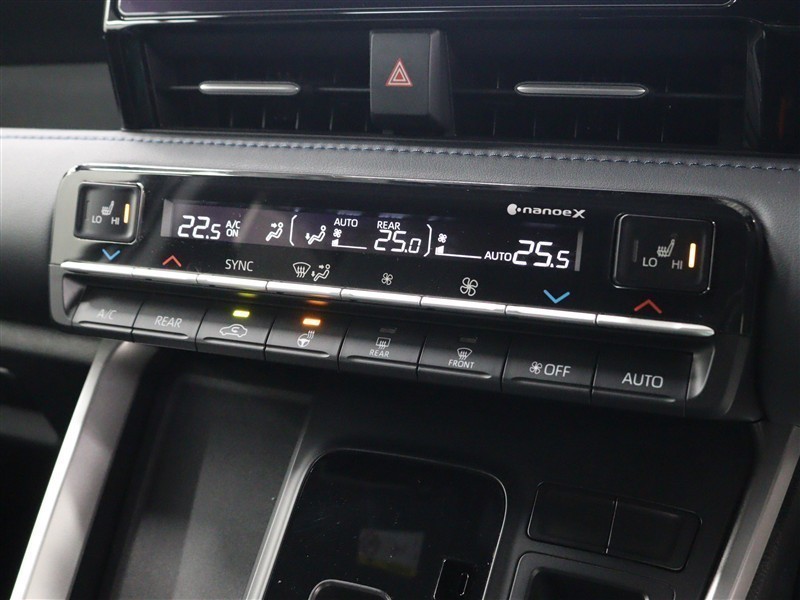 左右独立温度コントロールフルオートエアコン!運転席、助手席それぞれ独立して温度設定が可能です。ナノイーXも搭載され、室内空間は快適です。