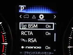 車線変更時などに、ドアミラーでは確認しにくい後側方エリア(ブラインドスポット)に存在する車両をレーダーで検知。警告サインをドアミラー等に表示することで、運転者に注意喚起する機能。