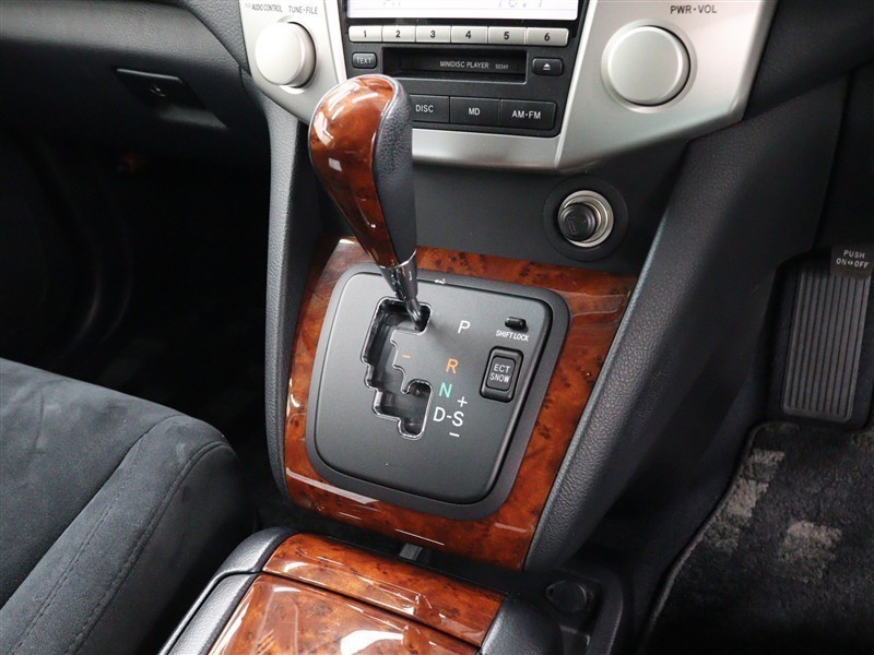 木目調+本革巻きの3本スポークステアリングホイール、シフトレバー&ノブが装備されています。