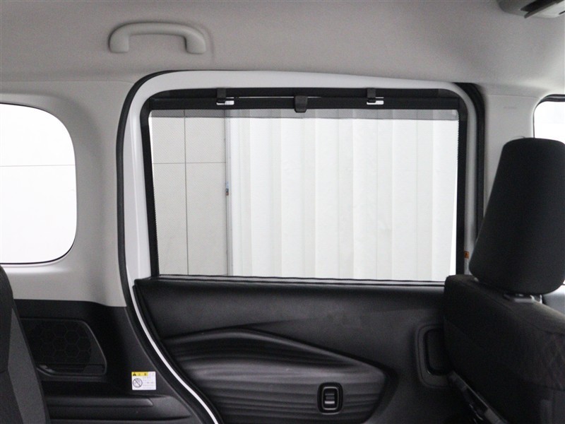 スライドドアに収納式のサンシェードを装備しています。