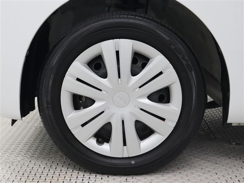 足元を汚れから守りスムーズな空気の流れに貢献するフルホイールキャップを装着しています。タイヤサイズ155/65R14