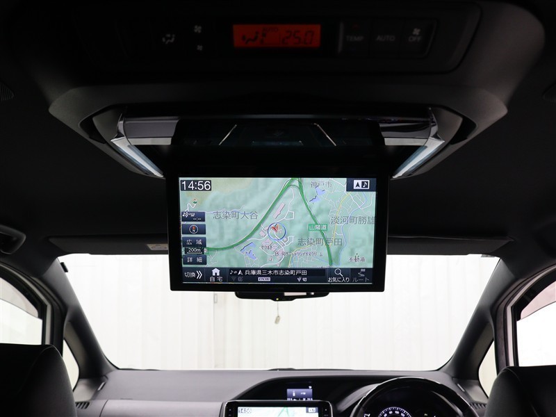 広い空間でも見やすい、天井取り付けタイプ迫力の大画面後席ディスプレイを装備しています。